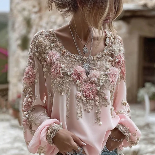 3D Digital Print Women's Crew-Neck Pullover Long Sleeve