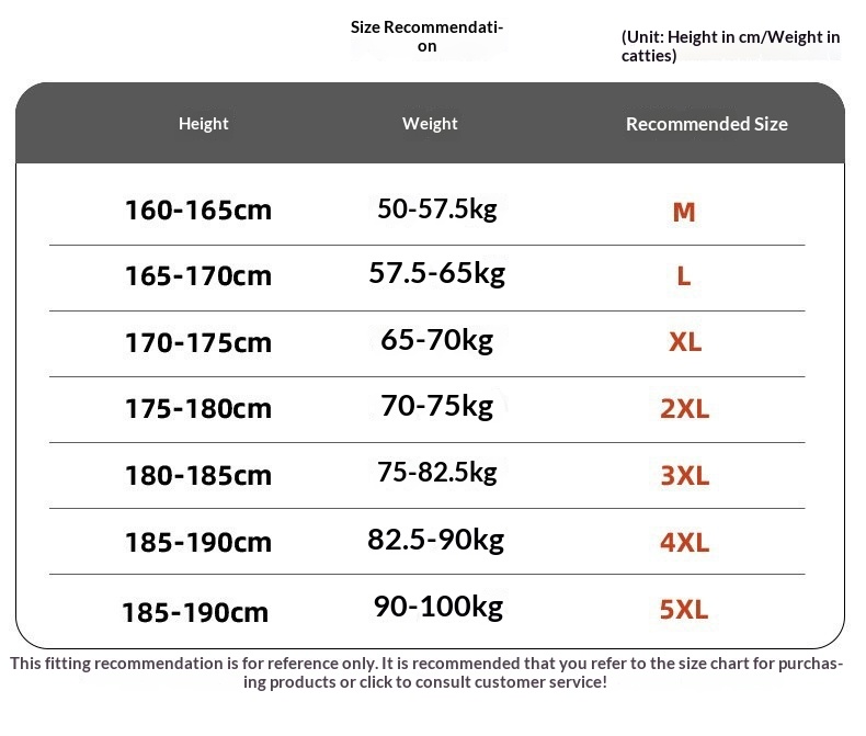 Sizes: M, L, XL, 2XL, 3XL, 4XL, 5XL