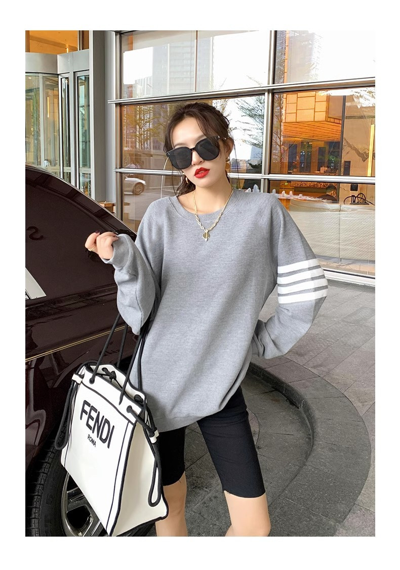 Polyester Waffle Sweatshirt Round Neck Long Sleeve Women's Sweatshirt Fashion Casual Loose Large Size Street Stall Supply Wholesale